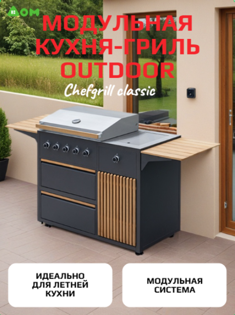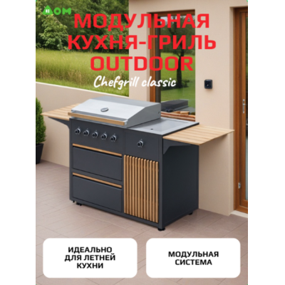 Ищете, где купить уличную мебель в Минске, которая будет не только красивой, но и функциональной? Представляем модульную кухню-гриль Outdoor CHEFGRILL Classic в стильном антрацитовом исполнении с отделкой из натурального тика — это не просто садовая мебель, а полноценная уличная мебель для террасы, сочетающая в себе эстетику, практичность и комфорт.