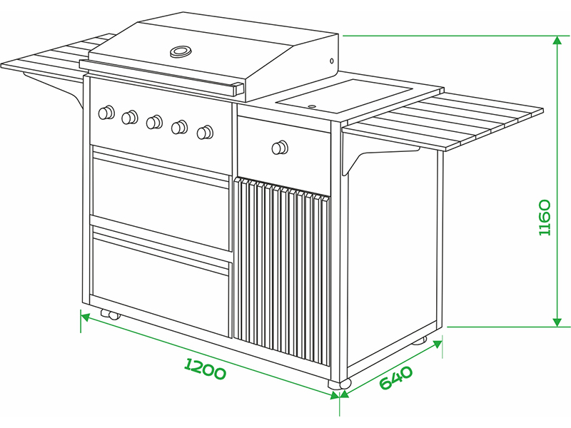 - Гриль-модуль: 1200 × 640 × 1160 мм