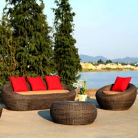 - Садовая мебель из искусственного ротанга более устойчива к внешним воздействиям, не теряет цвета и формы даже под воздействием дождя и солнца.