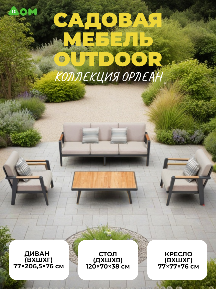 Песочный оттенок и элегантные формы делают комплект Outdoor Орлеан идеальным решением для оформления уютного уголка на террасе, в саду или загородном доме. Гармония стиля и удобства ощущается в каждой детали: от мягких подушек до продуманной эргономики кресел и дивана. Он создаёт лёгкую, тёплую атмосферу, где можно отдохнуть, устроить встречу с друзьями или провести вечер в уединении.